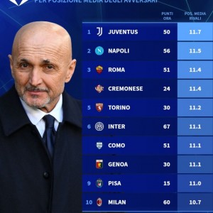 3月11日讯 德国转会市场统计了意甲各队剩余10轮对手的平均排名,并列出榜单,尤文的对手平均排名最低。意甲各队剩余10轮...